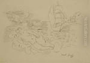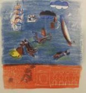Les Navires Vers Le Large. Ca. 1930. Oil On Canvas. 25,5 X 67cm. Signed Bottom Center: Raoul Dufy. Craftman's Frame