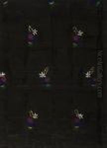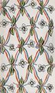 Etude Pour Textile - Roses Sur Fond Nid D'abeille