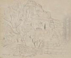 Arbre, Fontaine, Pigeonnier Et Vase De Fleurs
