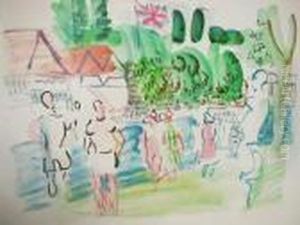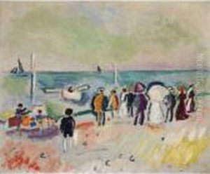 Pecheurs Et Baigneuses Au Bord De La Mer
