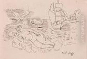 Figure By The Seashore With Tall Masted Ships; Etching, Signed Within The Plate, Bears Inscription On The Mount, 21.5x31cm