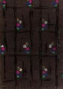 Branches Fleuries Dessin A L'encre Sur Papier Cachet Du Monogrammeen Bas A Droite 27 X 8 Cm