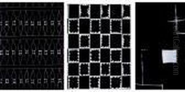 (i) Pois Blancs Sur Fond Noir (ii) Carres Et Ovales Blancs Sur Fond Noir (iii) Composition En Noir Et Blanc