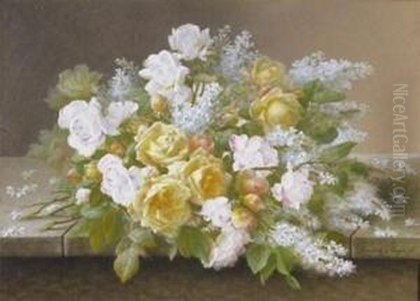 Still Life Of Yellow And White Roses With White Lilac