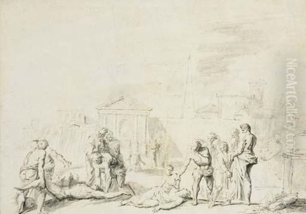 Hommes Et Femmes Mourant De La Peste Aux Portes D'une Ville