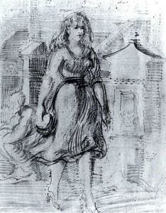 Woman Strolling (+ Another, Watercolor, Verso)