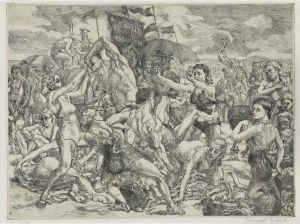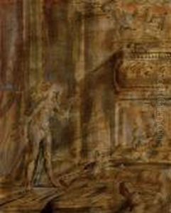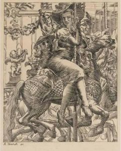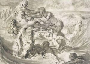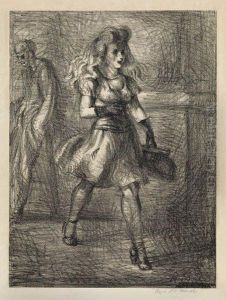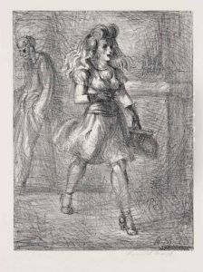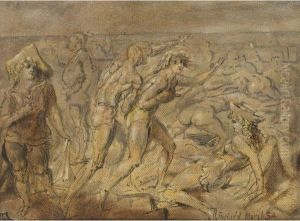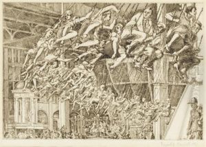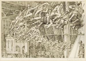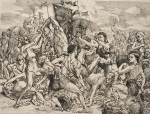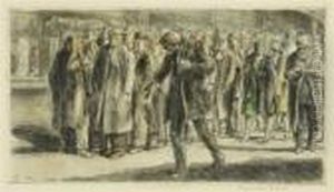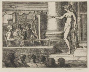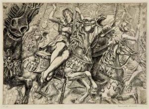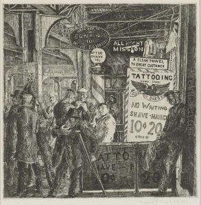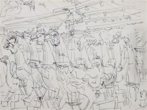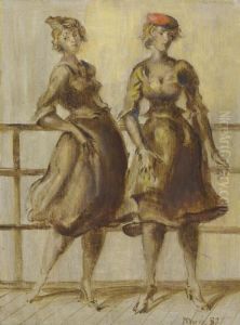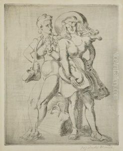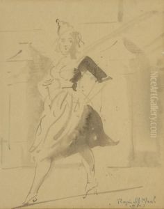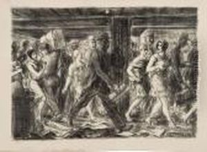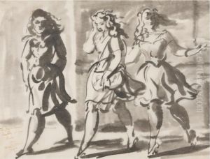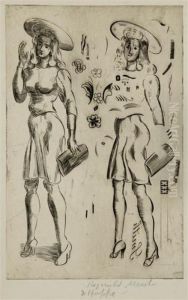 Young Women Walking On A Crowded Street: A Double-sideddrawing