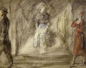 Young Women Walking On A Crowded Street: A Double-sideddrawing