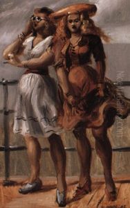 Beach Scene: Two Women Walking