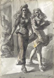 Burlesque Dancers: A Double-sided Watercolor