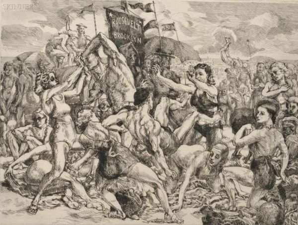 Coney Island Beach Oil Painting by Reginald Marsh
