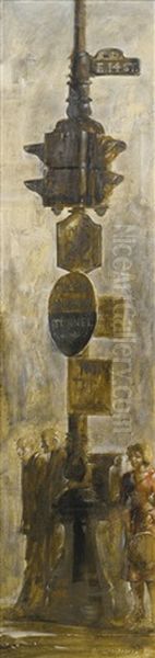 Traffic Post, 14th Street Oil Painting by Reginald Marsh