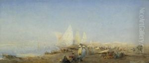 View From Egypt With Merchants, In The Background A City
