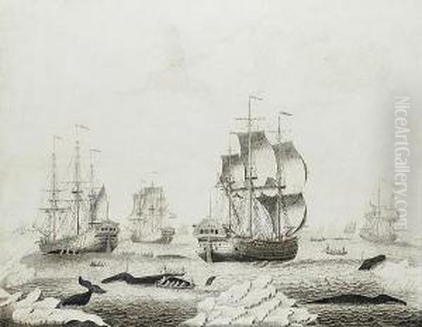 The Dutch Whalers Groenlandia And De Vroux Leonora With Other Shipping In Arctic Waters - A Penschilderij