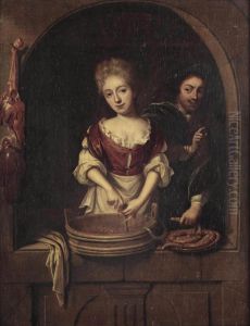 Bring the timeless beauty of Regnier de La Haye's A Maid Preparing Sausages With A Young Man into your home with a handmade oil painting reproduction. Carefully recreated on canvas by skilled artists using traditional techniques, this piece captures the delicate brushwork, subtle light, and vibrant color of the original masterpiece. With museum-level quality and rich texture, it brings elegance and artistic depth to any space. Enjoy free shipping and make this masterpiece a part of your personal collection.