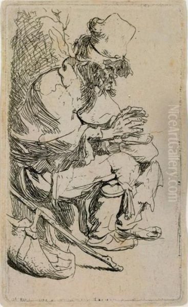 A Beggar Seated Warming His Hands At A Chafing Dish