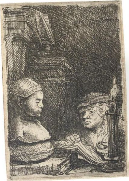 A Man Drawing From A Cast (b., Holl. 130; H. 191) Oil Painting by Harmenszoon van Rijn Rembrandt