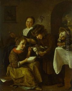 An Old Peasant Woman Feeding A Cat Milk