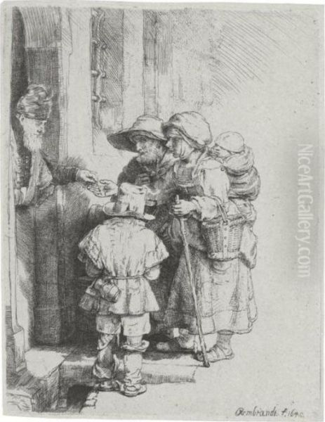 Beggars Receiving Alms At The Door Of A House (bartsch., Hollstein 176; Hind 233; Bjorklund & Barnard 48-c)
