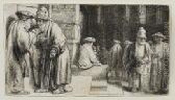 Jews In The Synagogue Oil Painting by Harmenszoon van Rijn Rembrandt