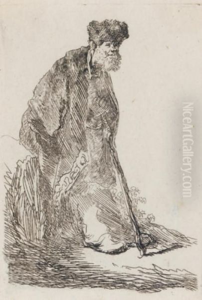 Man In A Coat And Fur Cap Leaning Against A Bank (b., Holl. 151; H. 14)