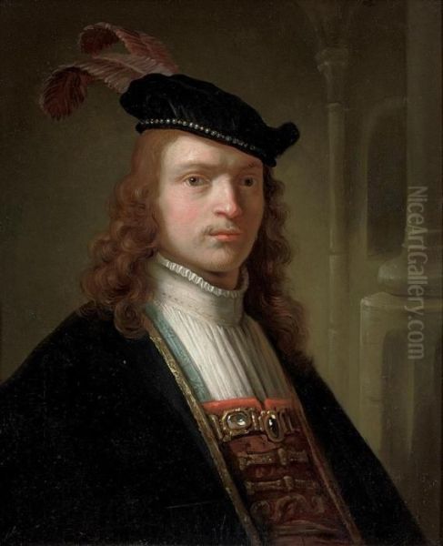 Portrait Of A Gentleman, Half-length, In A Black Robe And Plumed Cap