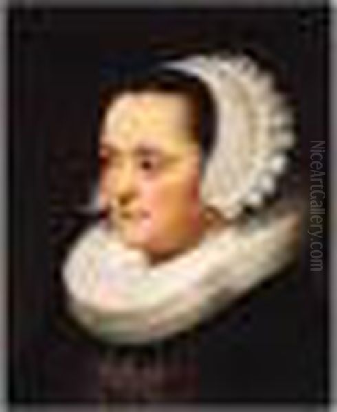 Portrait Of A Lady, Head And Shoulders, Wearing Black With A White Head-dress And Ruff