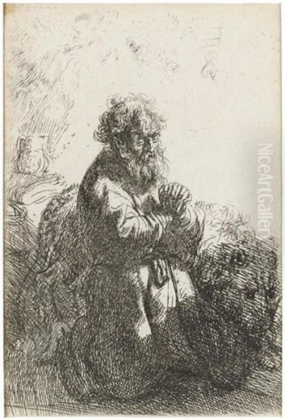 Saint Jerome Kneeling In Prayer, Looking Down Oil Painting by Harmenszoon van Rijn Rembrandt