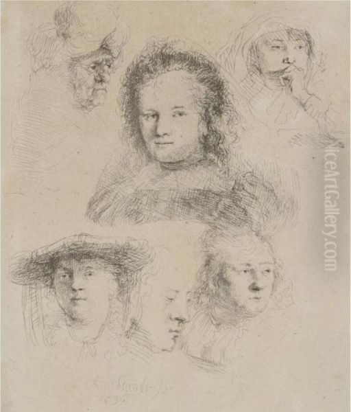 Studies Of The Head Of Saskia And Others (b., Holl. 365; H. 145;bb. 36-b)