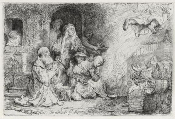 The Angel Departing From The Family Of Tobias (bartsch, Hollstein 43; Hind 185; Bjorklund & Barnard 41-g)