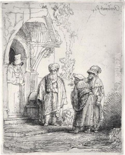Three Oriental Figures (jacob And Laban?) (b., Holl.118; H.183; Bb.41-f)