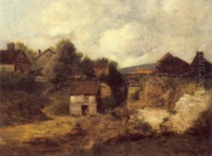 Snow Covered Village On The River, Evening