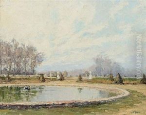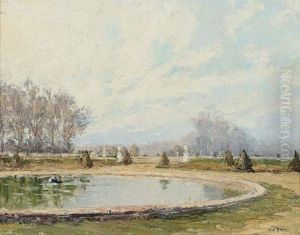 Piece D'eau, Versailles 1926 Huile Sur Toile Marouflee Sur Panneau, Signee En Bas A Droite.
