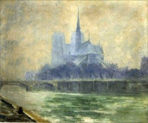 Notre Dame De Paris Vue Du Petit Pont 1939 Huile Sur Panneau.