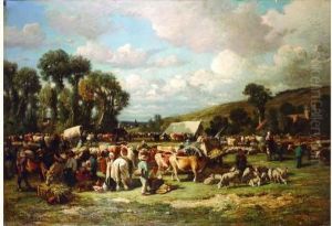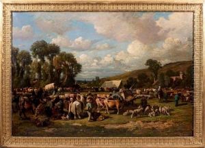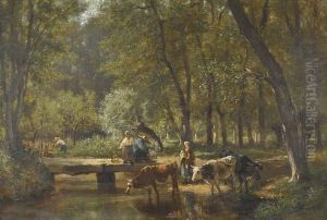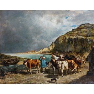 Barcazas En El Rio Oil Painting by Rene-Joseph Menard