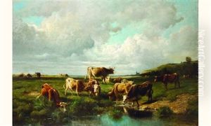 Soleil Couchant [; Sunset, Oil On Panel, Signed]