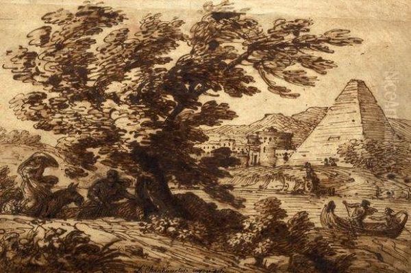 Sainte Famille Dans Un Paysage Fluvial Avec La Pyramide Desextius