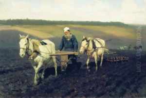 Ploughman. Lev Nikolayevich Tolstoy in the ploughland