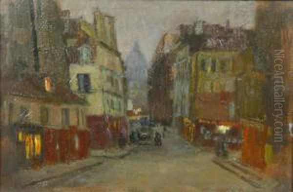 "rue Du Monte Pave" Olio Su Cartoncino Firmato In Basso A Destra. Firmato, Titolato E Datato Oct. 1925 Al Retro, In Cornice