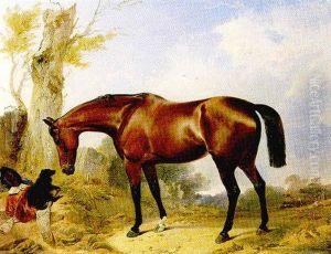 A Bay Hunter And A Dog In A Landscape