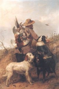 A Hawk Attacking A Pheasant, With Huntsmen And Spaniels Beyond