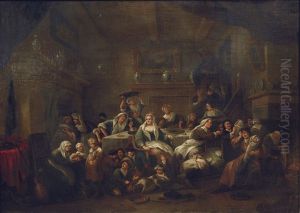 A Brothel Scene With Figures Making Merry Together With Figures Making Music In The Background And A Violin Player In The Foreground