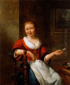 Portrat Einer Jungen Sitzenden Dame Mit Zinnloffel In Der Hand