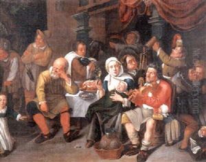 Boors Merry Making In An Inn With A Pancakecook In The Foreground