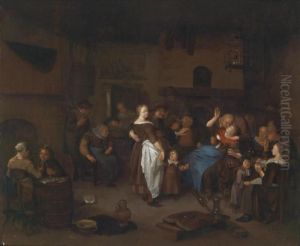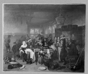 Figures Drinking And Merry Making In A Tavern Interior