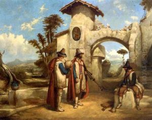 Portrait Of Miss Frances Blagrave, Later Mrs Charles Digby (1809-1849), On A Terrace In An Italian Landscape, With Her Eastern Maid And A Papillon...
