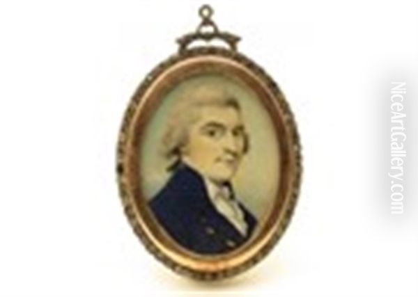 Portrait Miniature A Gentleman, Head And Shoulders In A Blue Coat And White Stock