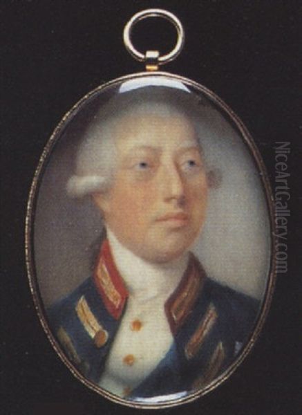 King George Iii, Of Great Britain, Wearing Windsor Uniform, His Blue Coat With Scarlet Collar, The Ribbon And Star Of The Garter, His Wig Worn En Queue