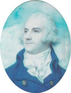 Edward Johnston Wearing Blue Coat With Pale Grey Collar, White Waistcoat And Tied Cravat, His Hair Powdered
