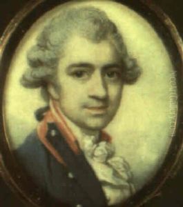 Clive Thomas Esq., With Powdered Hair, Wearing Blue Coat With Gold Buttons, Red Waistcoat And Frilled White Cravat